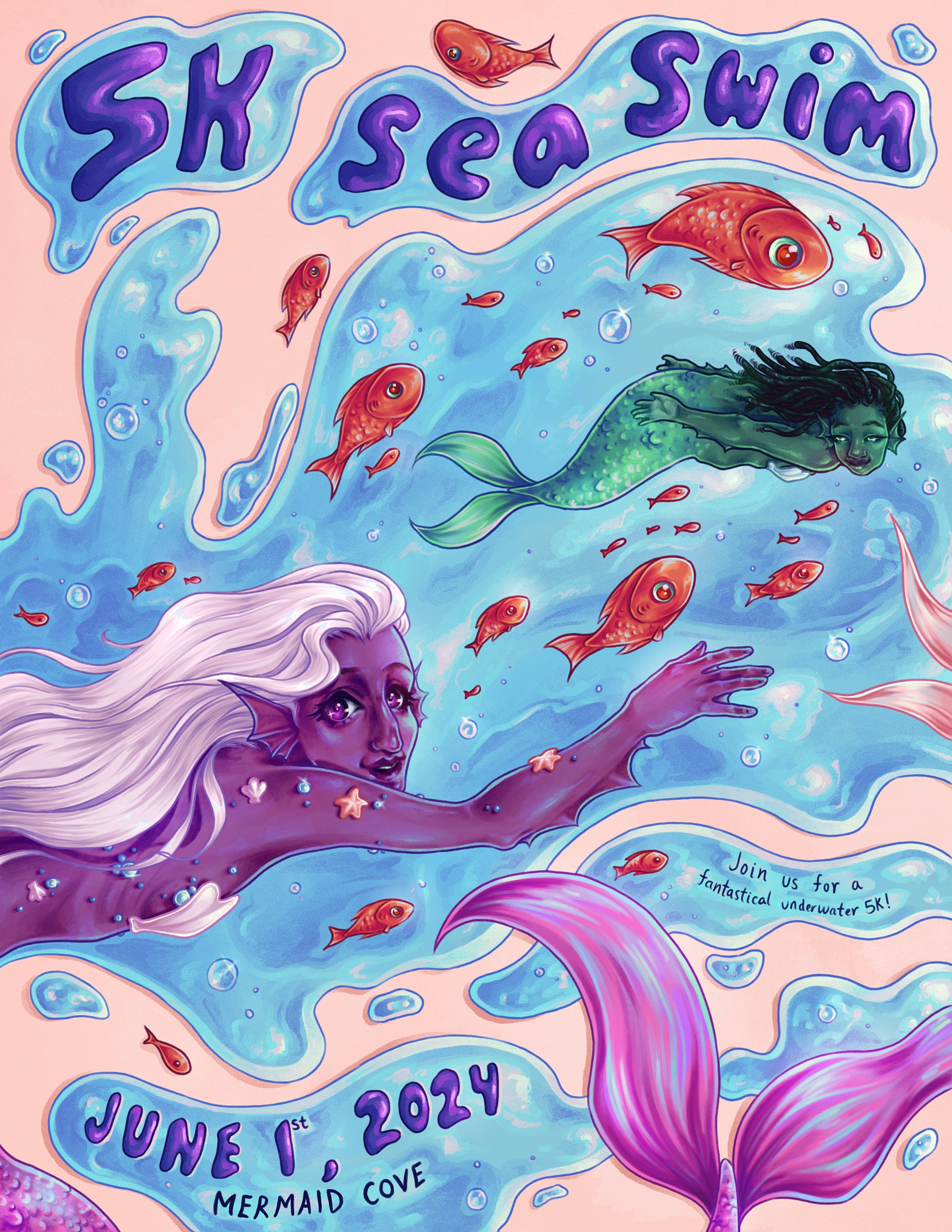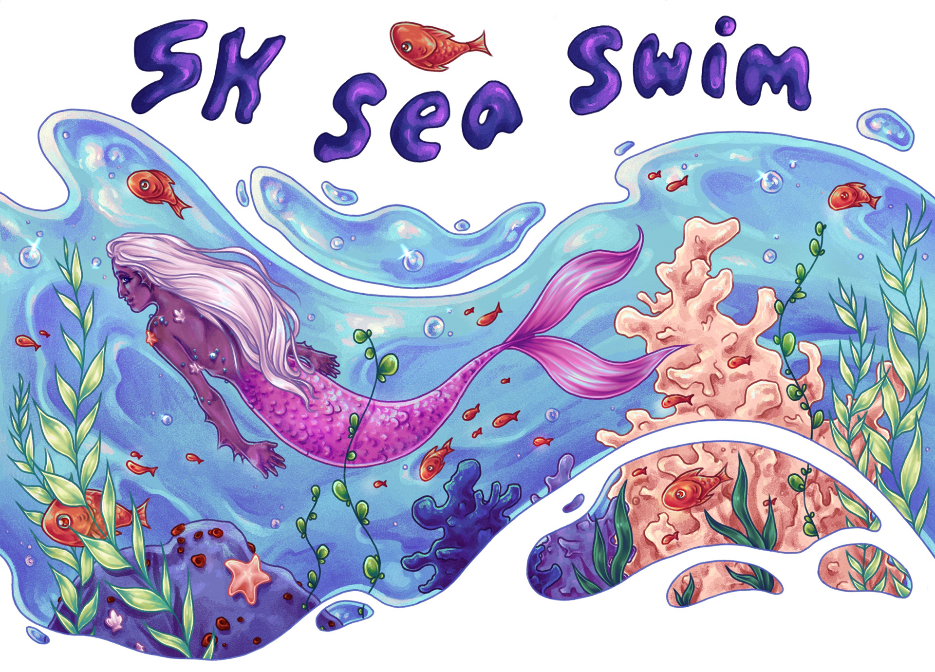 Illustration and poster for a fictional underwater 5k. Digital illustrations done in Procreate. 2023.