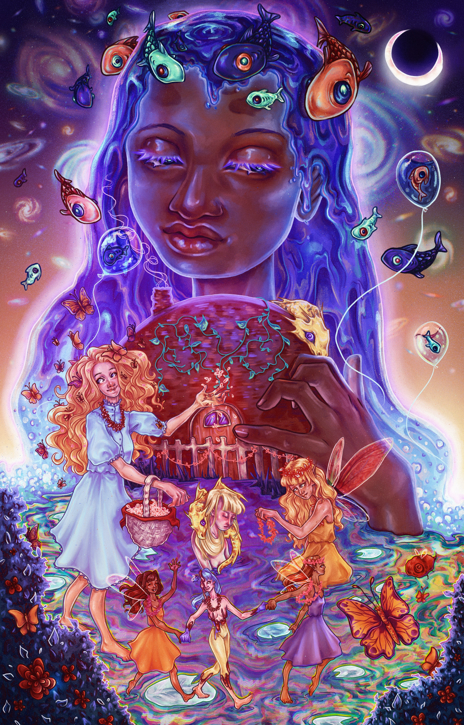 Illustration depicting fantasy artist Kinuko Y. Craft and pop surrealist painter Camilla d'Errico and their works. Digital illustration done in Procreate. 2022.