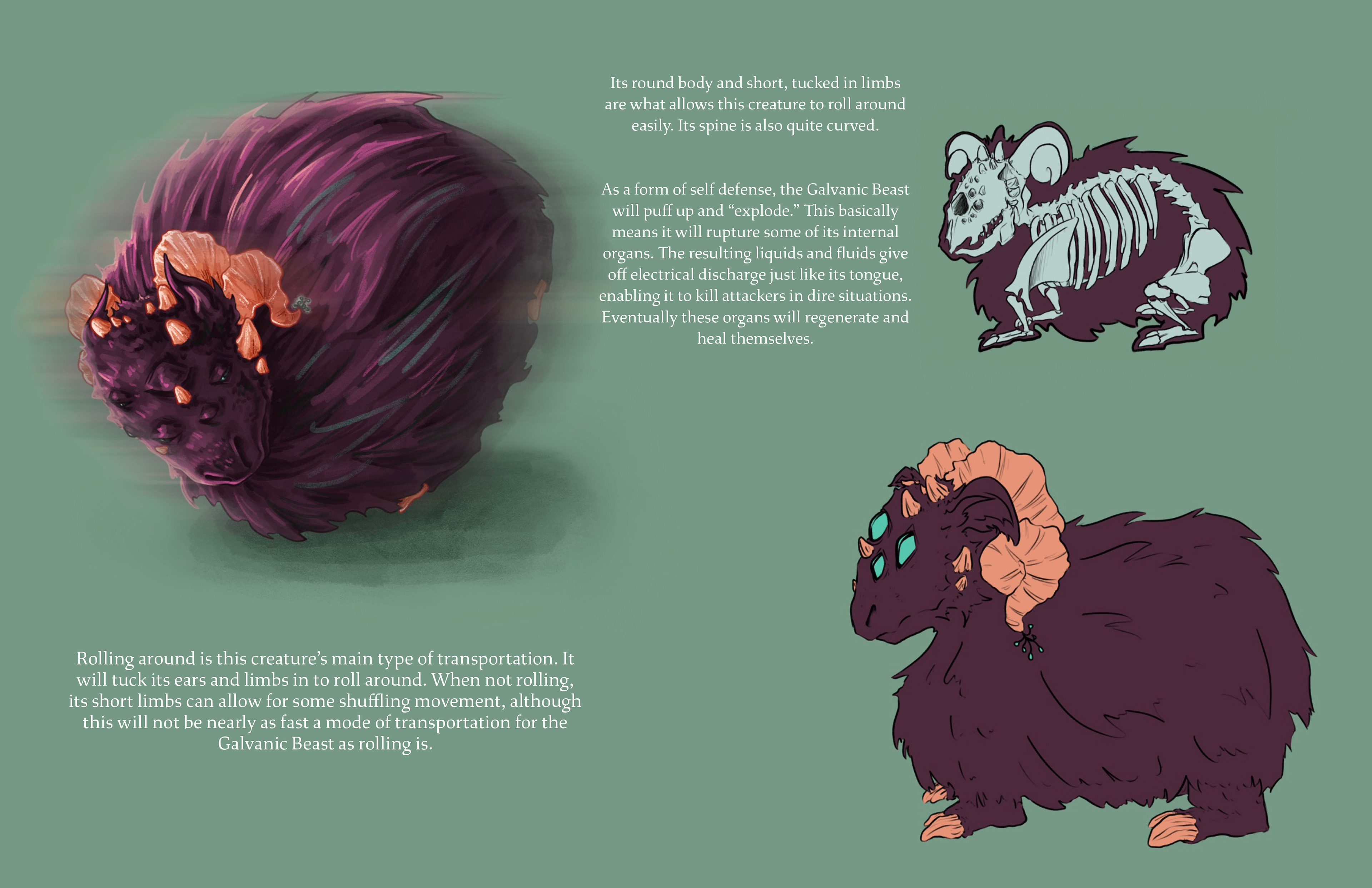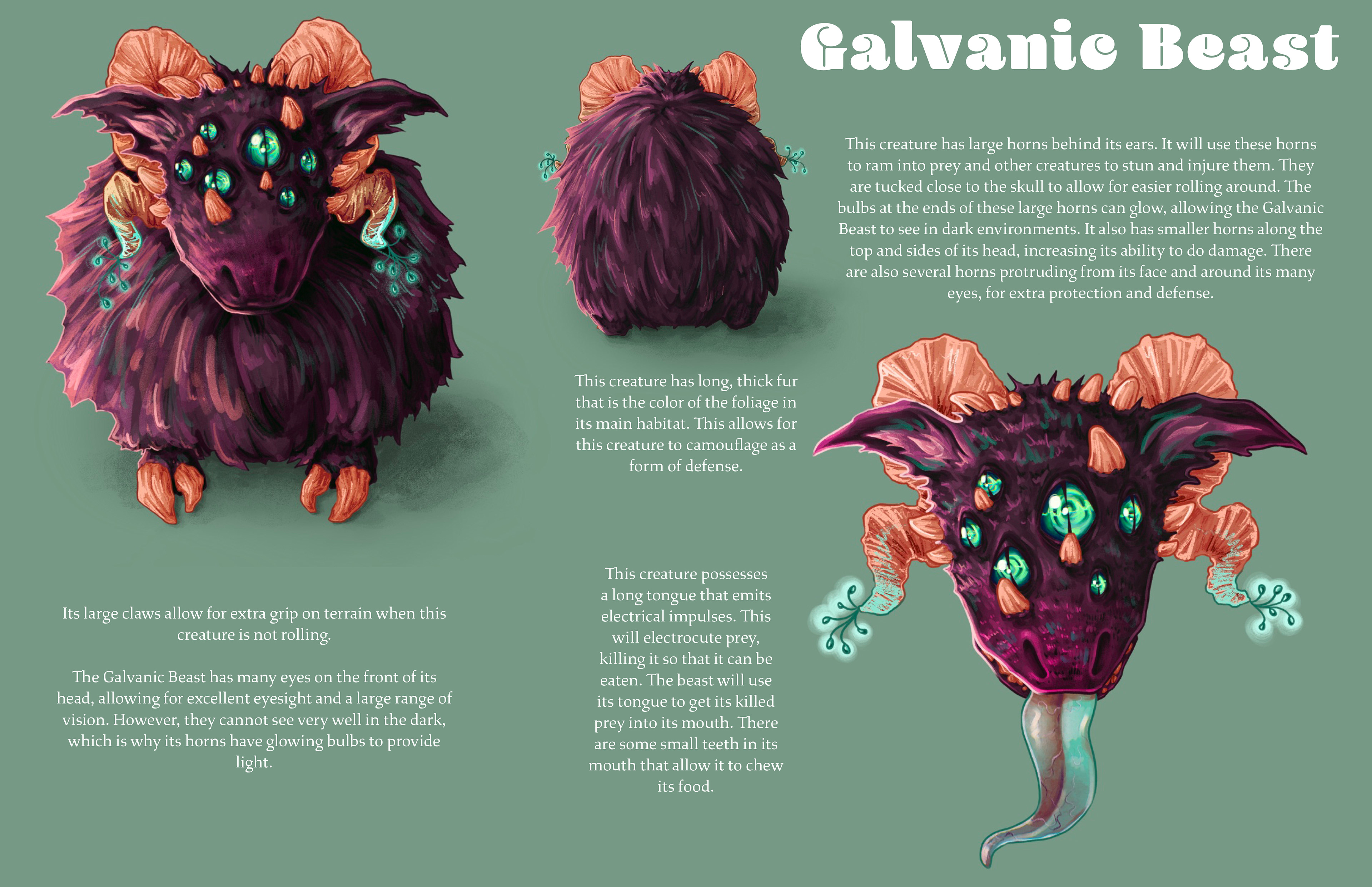 Illustration of a beast battle, based on a fantasy creature design. Digital illustrations done in Procreate. 2022.