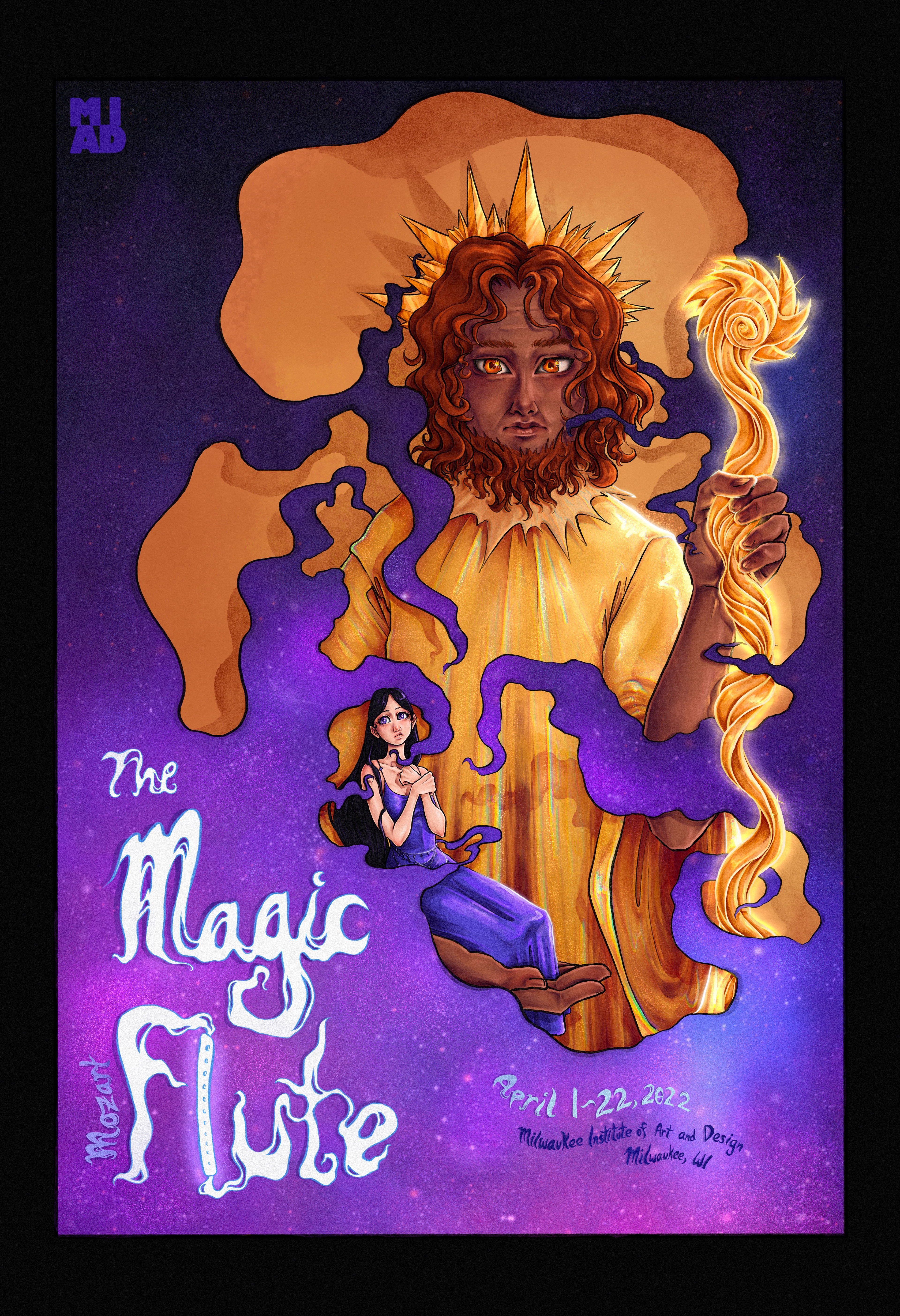 Illustrated poster for Mozart's The Magic Flute opera. Digital illustration done in Procreate. 2022.
